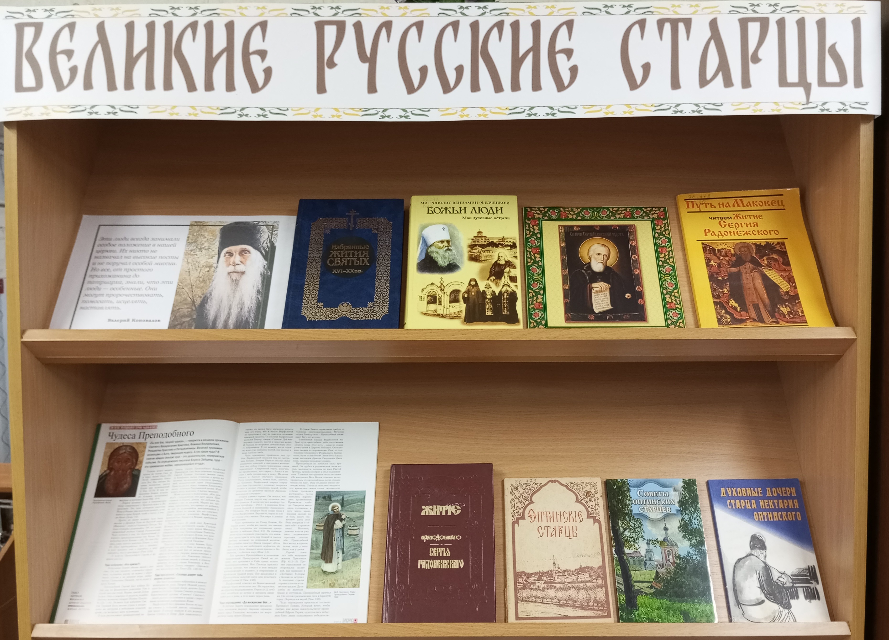 В библиотеке организована выставка, где представлены книги и статьи, рассказывающие о жизни, чудесах и духовных наставлениях великих русских старцев — от преподобного Сергия Радонежского до выдающихся старцев двадцатого века. Посетители смогут познакомиться с теми, кто питает душу любовью Христовой, духовно наставляет, укрепляет и поддерживает Святую Русь.