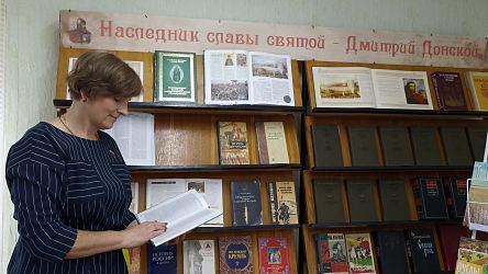 В читальном зале была организована выставка-просмотр «Наследник славы святой: Дмитрий Донской», на которой представлены как художественные, так и публицистические произведения, освещающие многогранную личность и исторический контекст правления великого князя.