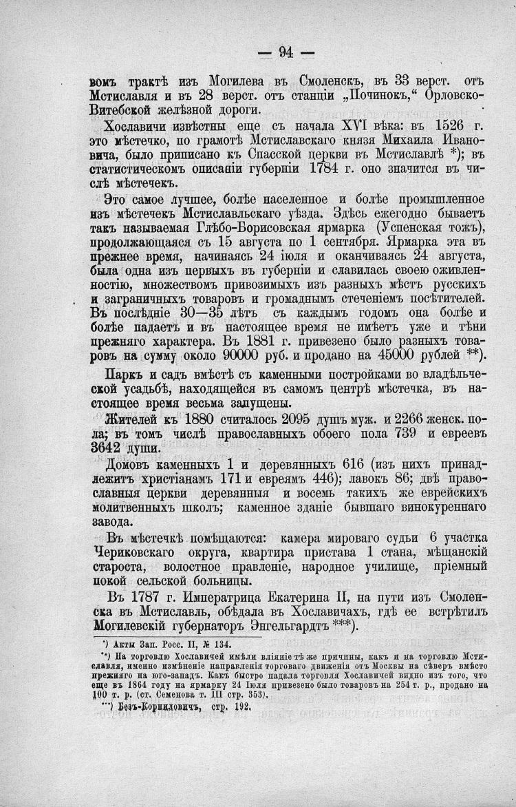 Сегодня мы публикуем отрывок с описанием местечка Хиславичи 1880 года. Источник — книга «Опыт описания Могилёвской губернии в историческом, физико‑географическом, этнографическом, промышленном, сельскохозяйственном, лесном, учебном, медицинском и статистическом отношениях» от 1884 года (редактор — губернатор Могилёвской губернии А. С. Дембовецкий).