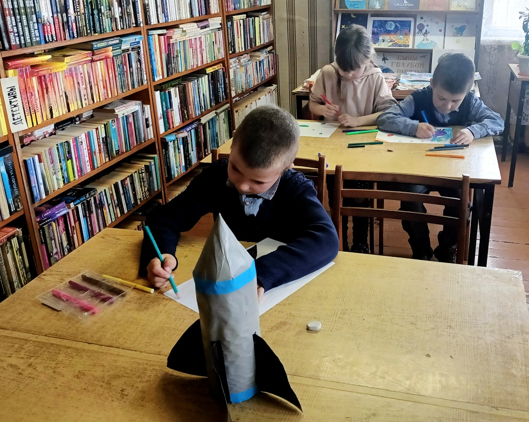 Библиотекарь погрузила юных слушателей в историю первого полёта человека в космос, рассказав о легендарном Юрии Алексеевиче Гагарине. Его мечта о звёздах не просто вознесла его над планетой – он проложил человечеству путь в космос. За те 108 минут, что длился его исторический полёт, мир изменился навсегда. Ребята с энтузиазмом рисовали космические сюжеты и отвечали на вопросы тематической викторины. К мероприятию была приурочена книжная выставка «Поэзия звёздных высот», где посетители могли познакомиться с литературой о Ю. А. Гагарине и увидеть творческие работы юных художников.