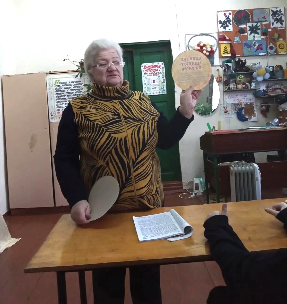 Праздник начался в библиотеке, где гостей встретила яркая иллюстрированная книжная выставка «С Масленицей». Дополняли атмосферу традиционные атрибуты: самовар с бубликами, расписные матрёшки и другие символы народного быта.